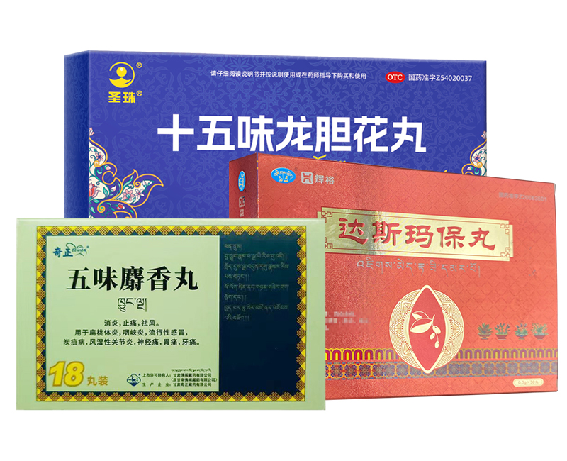 组方简介:五味麝香丸主治消炎、止痛、祛风。用于用于扁桃体炎,咽峡炎,流行性感冒,炭疽病,风湿性关节炎,神经痛,胃痛,牙痛等。达斯玛保丸主治清热解毒,消炎杀疠。用于脑膜炎,流行...
