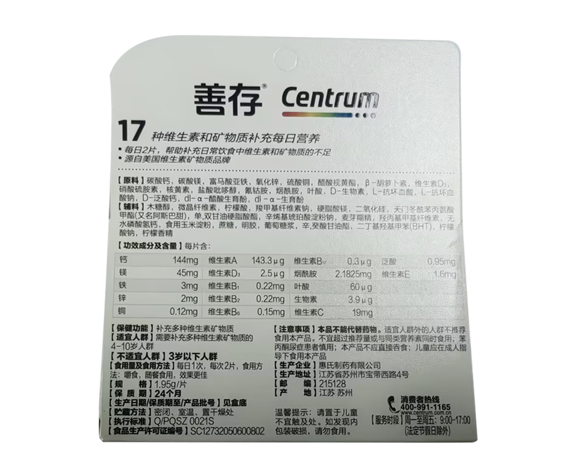 【主要作用】需要补充多种维生素矿物质的 4-10 岁人群