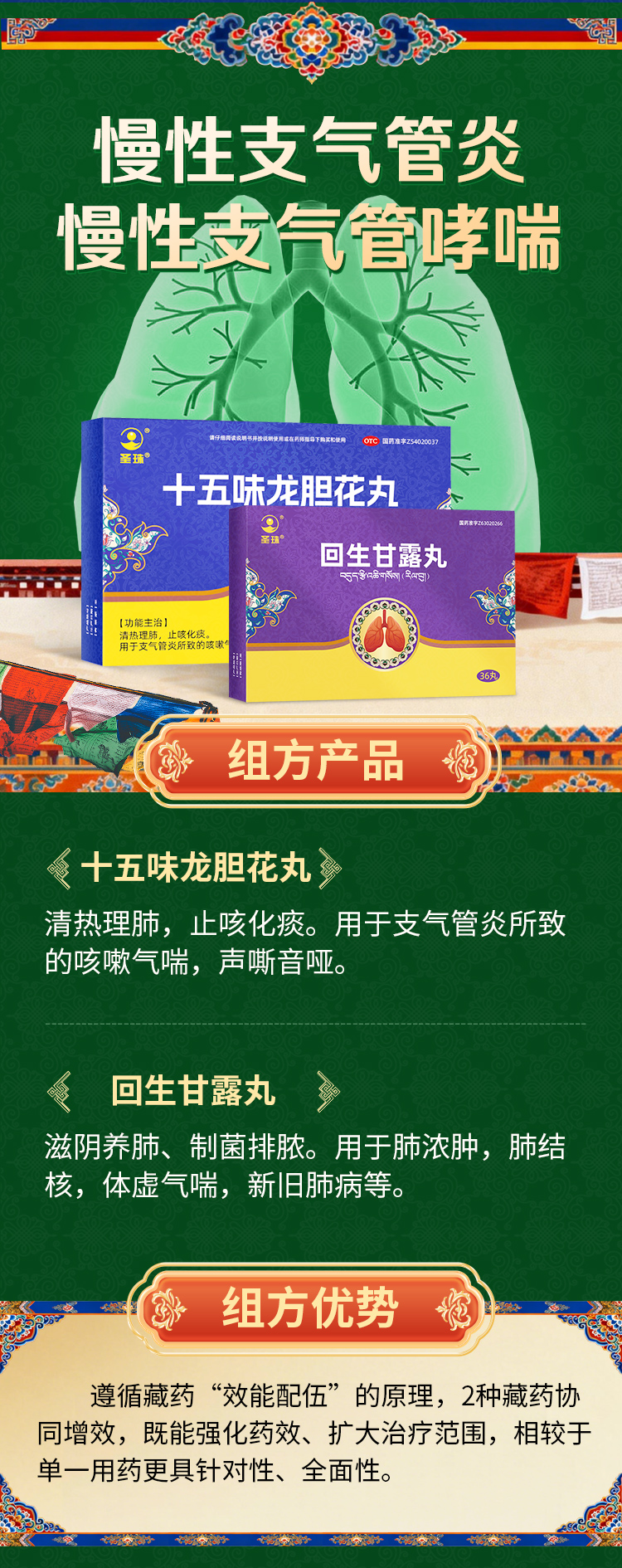 [轻度] 慢性支气管炎、慢性支气管哮喘 — 藏医组方 (1疗程:十五味龙胆花丸×10盒+回生甘露丸×5盒)