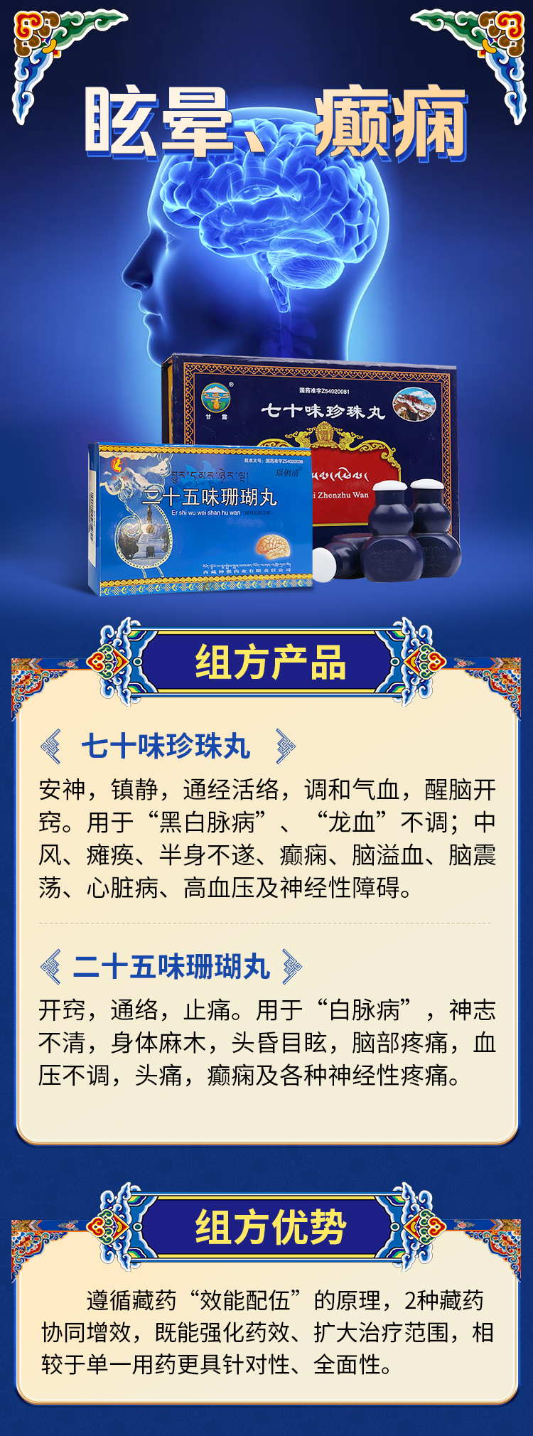被誉为雪域珍宝的七十味珍珠丸,是藏医经典方剂!其具有安神镇静,通经活络,调和气血,醒脑开窍的功效。或许有部分朋友听说过七十味珍珠丸,亦或者正在服用,那么,在临床应用上,你知道七十味珍珠丸对于什么疾病的治疗最好吗?... [ 详细 ]